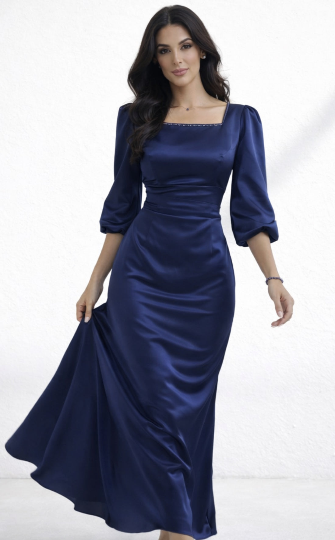 Navy Bridal Silk Evening Dress - Ready To Ship – Elegant Wedding Occasion Dress – UAE