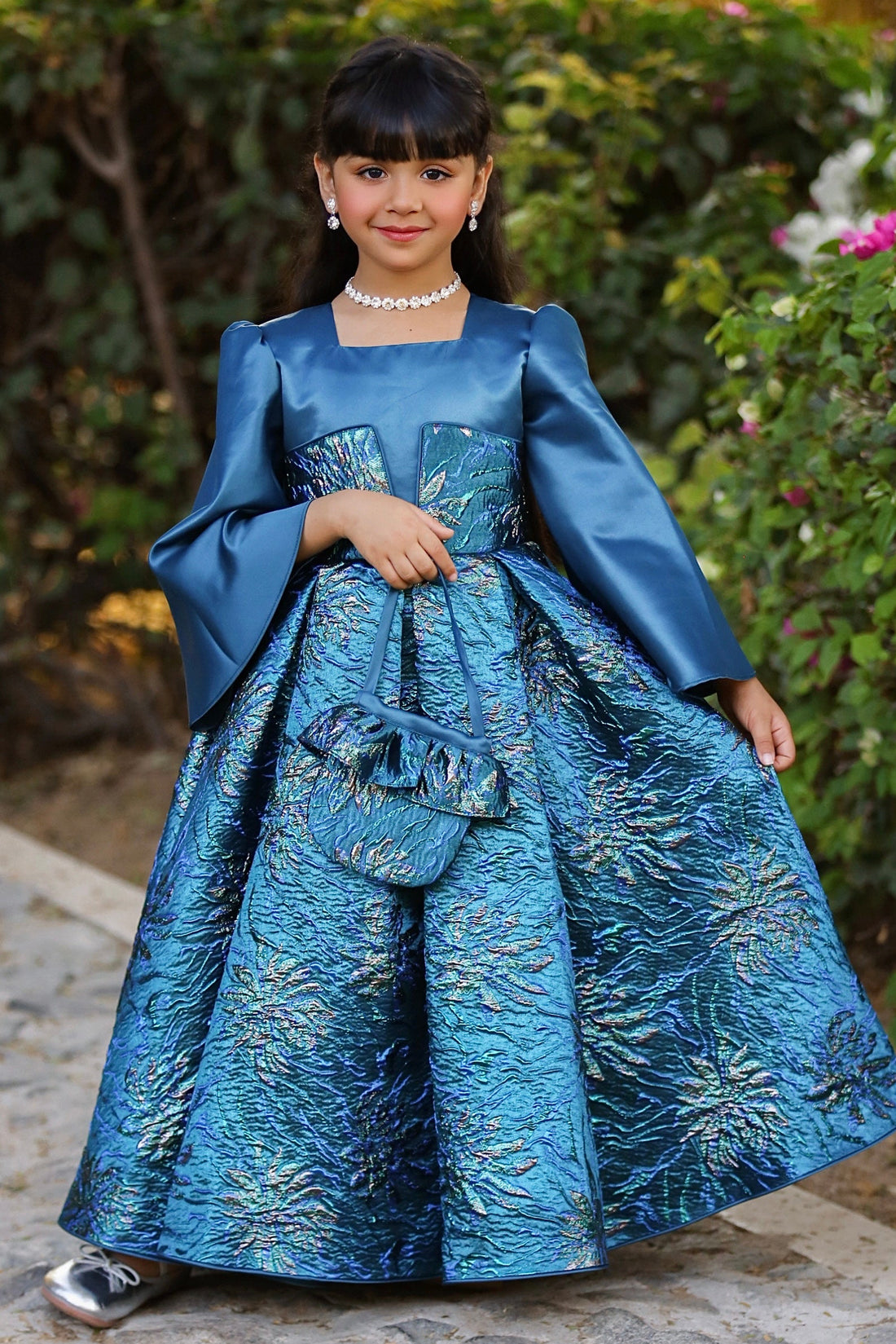 Peacock Bloom Jacquard Party Dress-Ready ti ship- – Elegant Occasion Dress – UAE Boutique