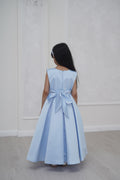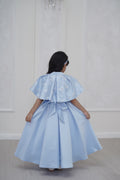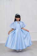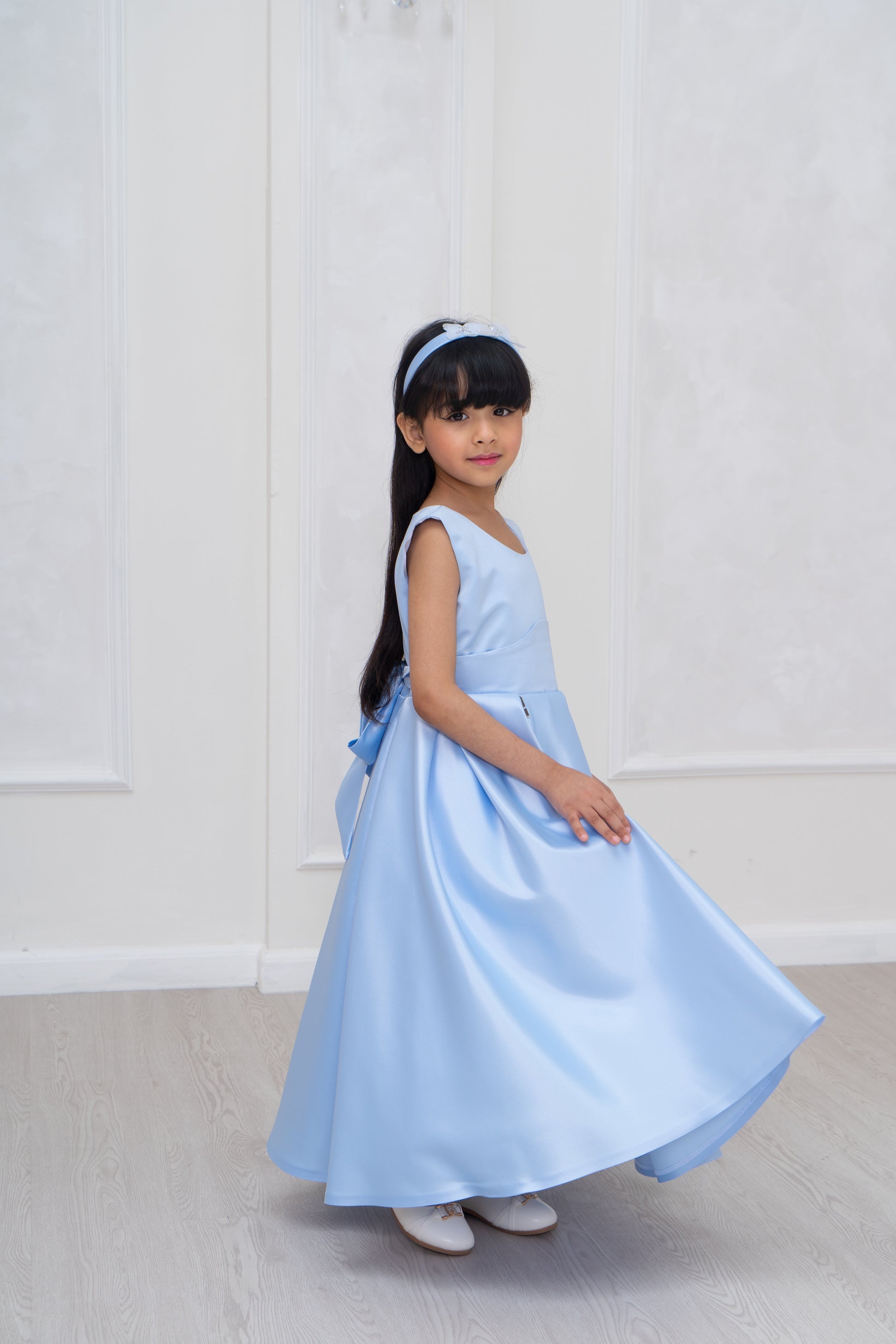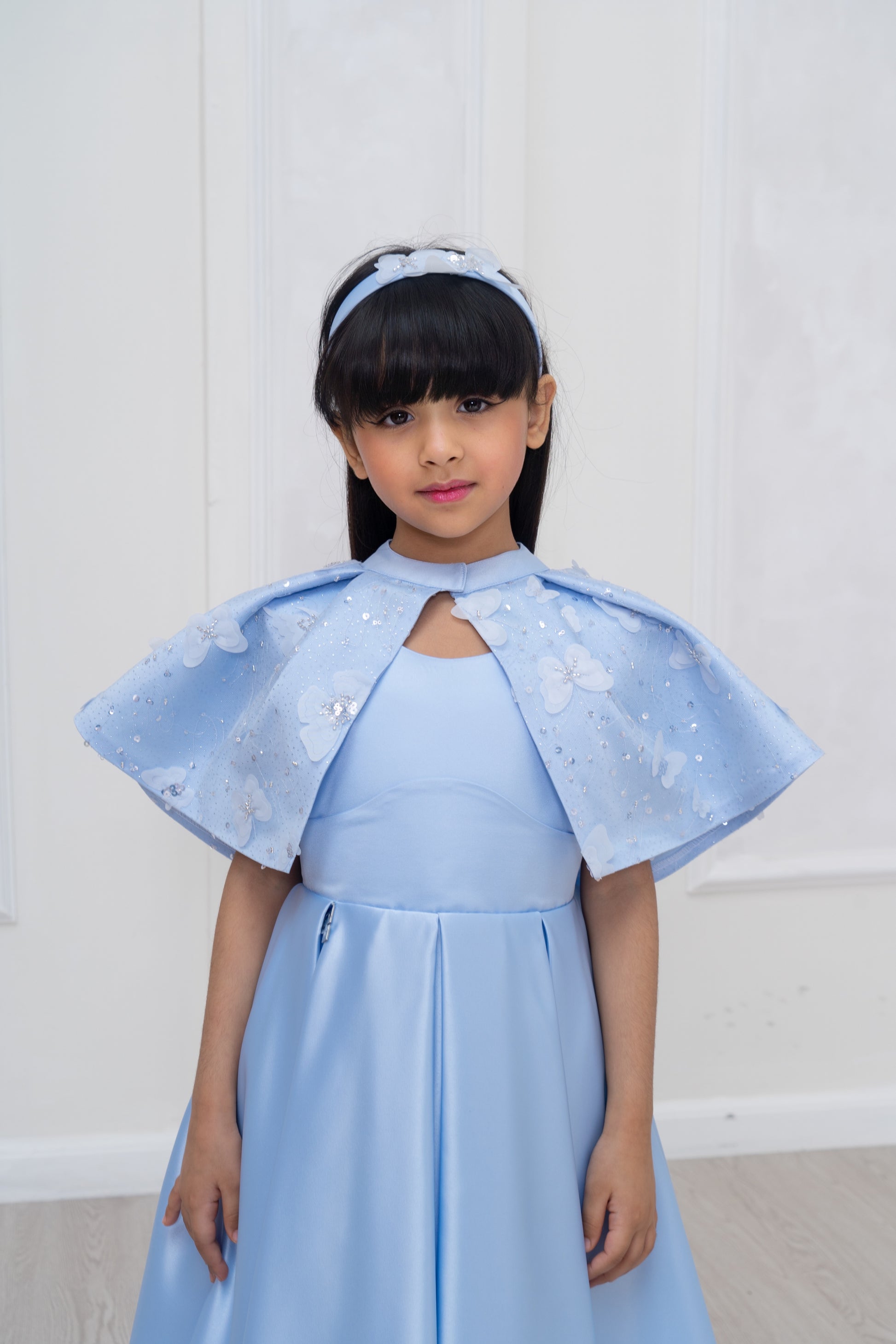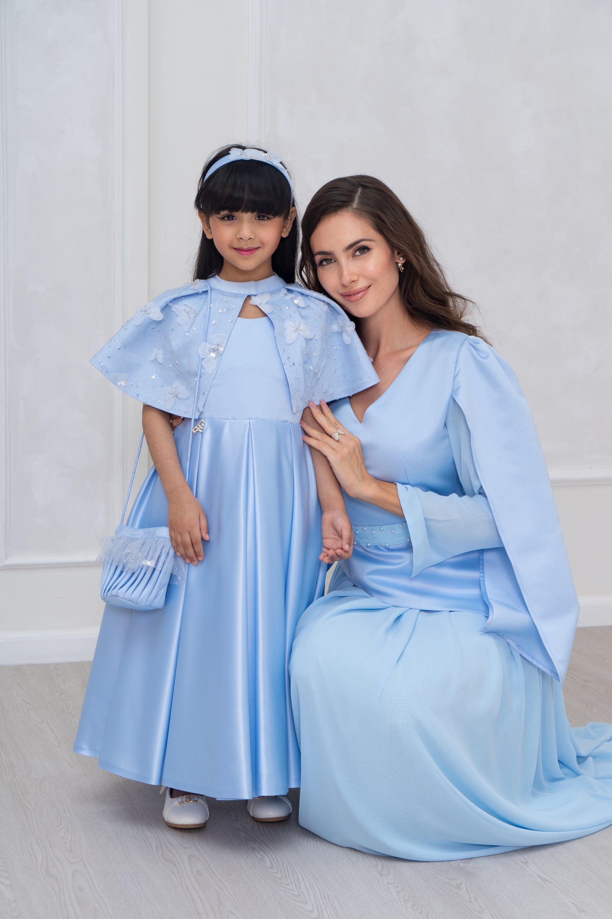 This satin grey dress features a stunning butterfly-accented top with delicate lace details, creating a dreamy, sophisticated look.