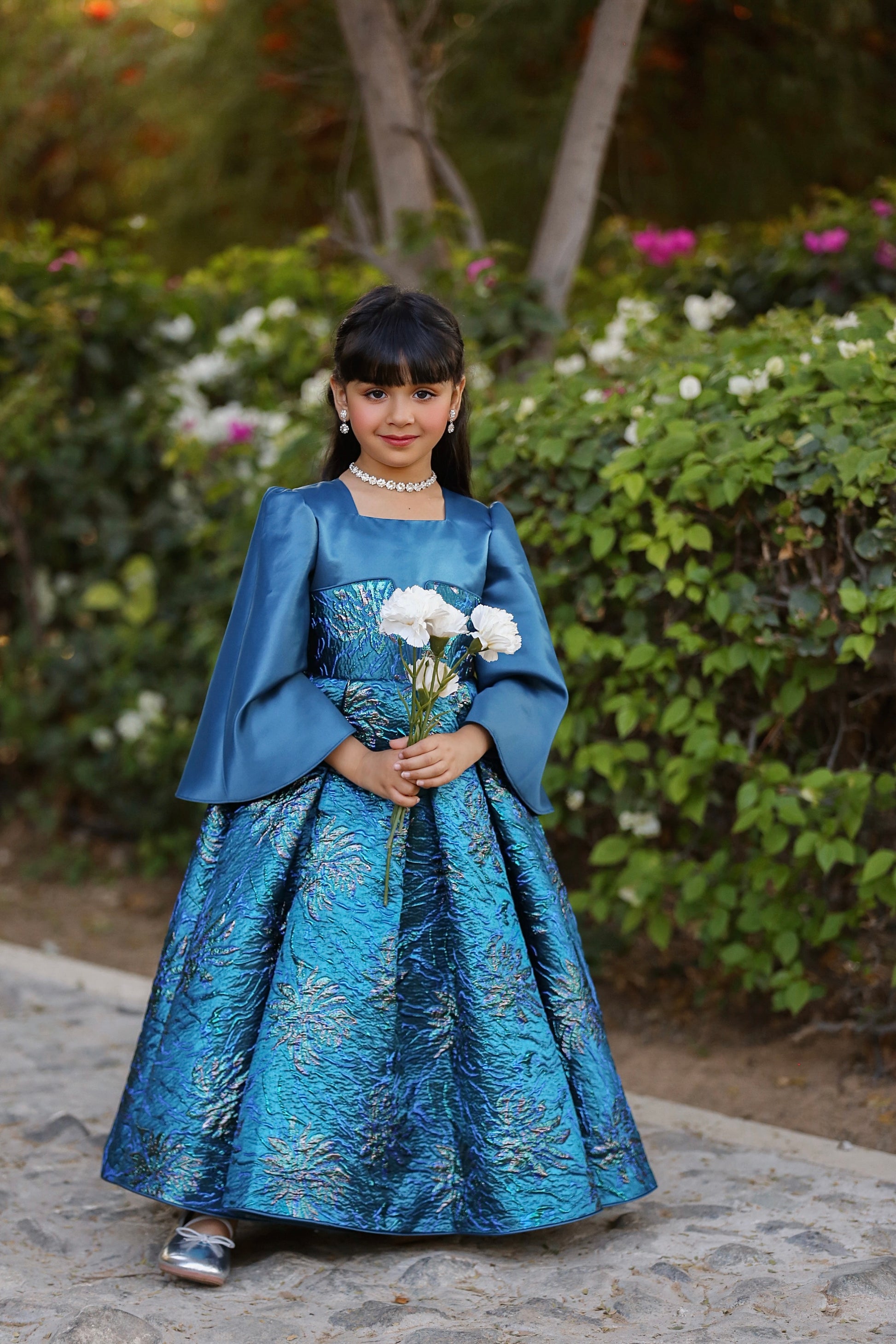 Peacock Bloom Jacquard Party Dress-Ready ti ship- – Elegant Occasion Dress – UAE Boutique